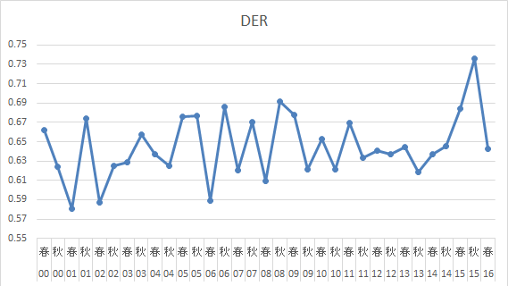 DER=1-(被安打ー被本塁打+失策)÷(対戦打者数ー被本塁打ー奪三振ー与四死球ー敬遠四球)
