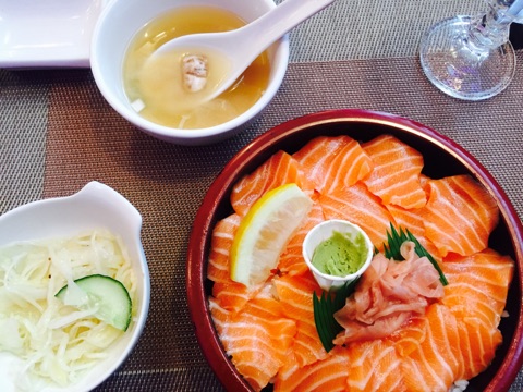 サーモンのちらし寿司も味噌汁も、日本のものと変わらず美味しかったです。オーナーは日本人かと思いきや中国人!和食の中でも寿司はフランス人にウケがよく、儲かるとのこと。笑