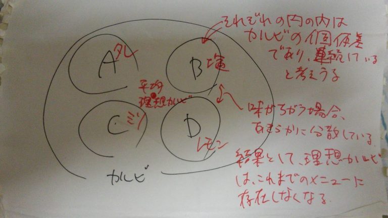 つまり、「カルビと呼ばれるものすべてに合う」ごはん、が「本当に最適化」していたのは、他でもない、平均値としての「理想カルビ」だったのである。