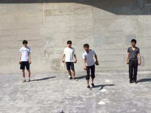 なんと彼の親戚がペタンクで使うブール(鉄球のこと)を持っており、僕が東京都のペタンククラブ・モンソレイユさんからお借りした道具と合わせ、試合ができる環境が整いました。