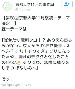 更にネットの普及に伴い2ちゃんねるでは盛んに二郎に関する掲示板が立ち上がり、最近ではツイッターでも「二郎からのセイクで優勝せえへん?」などの造語が生まれました。これを京都大学が改変して学園祭のスローガンにしたりもしてますね。正直意味がわからないです。