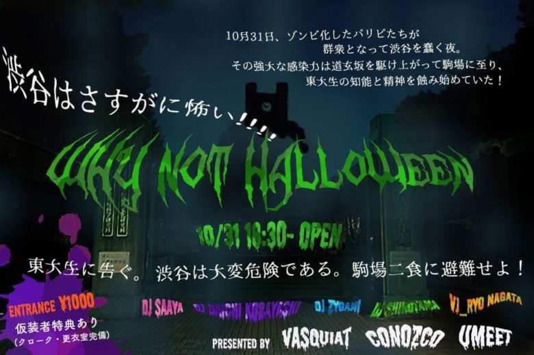 “10月31日の18:30より、駒場キャンパス食堂部2階(通称2食)でハロウィンパーティーが開催される”