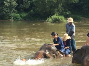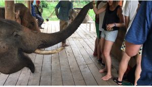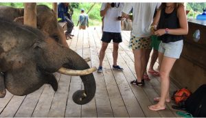 それでもなんとか無事に登ると、ついに象を操ります。習った象語を駆使して華麗に象をコントロール…!はできません。全く言うことを聞いてくれません。命令しながら象の背中を蹴るのも、最初は遠慮してポンポン、という感じですが、馬じゃないけど馬耳東風、象耳東風、全く聞く耳持たずという感じだったのでしまいに思いっきり蹴っていました。