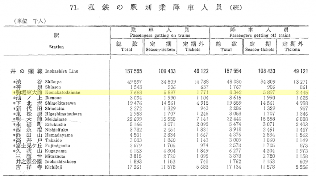 つまり、駒場東大前駅は当時から乗降客数が多かったにもかかわらず停車駅から外されています」