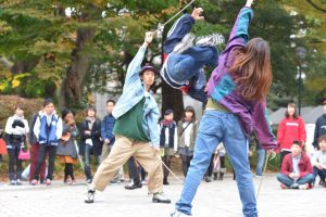 ストリートダンスサークルのWISHとBOILED、ジャズダンスサークルのFreeD、ダブルダッチサークルのD-actが主に普段踊っている人たちで、学園祭前のシーズンになるとまるきゅうプロジェクトなども生協前で練習したりします。