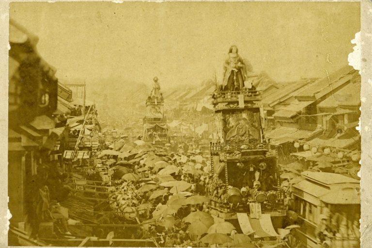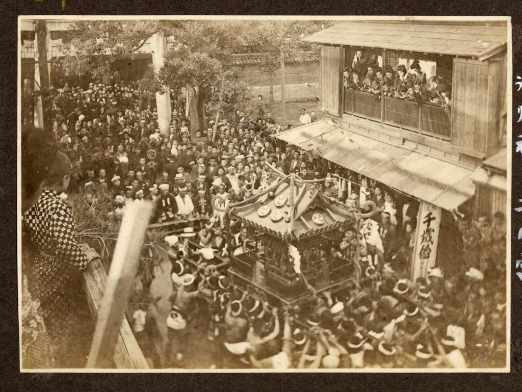 ところが明治半ばまでは町神輿というものはなく、代わりに山車を曳き、さらに神幸祭には附祭と呼ばれる仮装行列をついて回りました。現在とはかなり異なるパフォーマンスを行っていたのです。