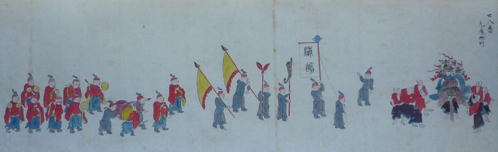 文化資源学会の五周年記念事業として復元プロジェクトと名付けて、最初は2007年に行いました。この附祭は『江戸名所図会』に描かれた大江山凱陣の行列を元としています。