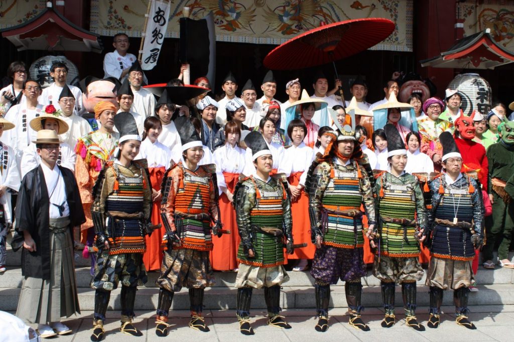 附祭では、着ぐるみを着たり、木や石や器物になったりと、一見して馬鹿馬鹿しい格好をして歩いていました。町人が異国人や、異人などの様々な仮装をして、神輿について回るのです。異国人や異人などが日本の中心江戸に集まってくることを模して、江戸の繁栄を讃えていたのです。この仮装は、当時よく知られていた物語や昔話をテーマにしています。