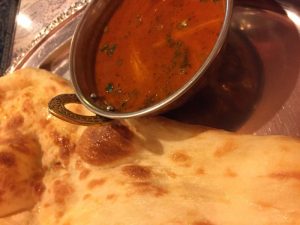 スパイシーかつまろやかなインドカレー、アツアツでほのかに甘いナン……