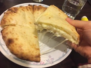 インカレサークルのメンバーと私が揃ってお勧めするのがチーズナン。120円の追加料金でチーズたっぷりのモチモチナンが味わえます。