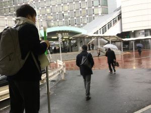 「ちょっと雨宿りしよう・・・」といって駅構内に入ったのが運の尽きだったようです。電車に乗って帰るという魅力に勝てませんでした。無念のリタイヤです。