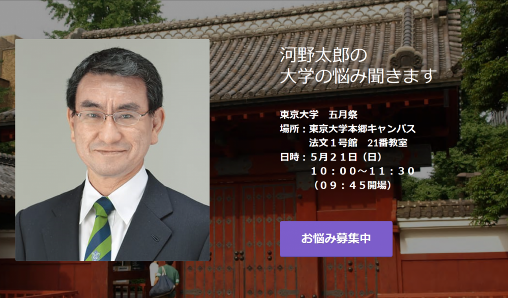 瀧本:はい、五月祭企画「河野太郎の大学の悩み聞きます」ですね。