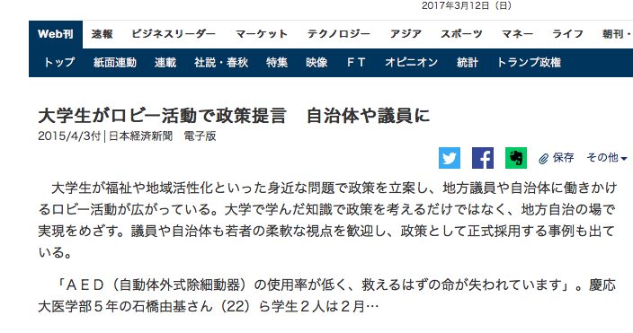 瀧本:AEDは、とある医学部のゼミ生が、いざという時に使われていないという事実を問題視し、議員や教授と連携したロビイング活動をした結果、なんと県の条例ができたんですね。