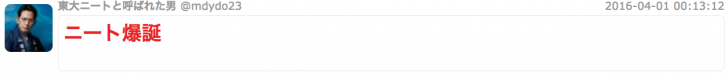 東大卒業後、ニートになり、東大ニートというアカウント名で、一部Twitter界隈をざわつかせてきた知る人ぞ知る強者である。