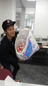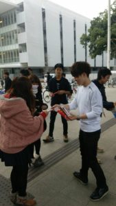 その答えは、ポッキーをもらった時の学生たちの笑顔、ポッキーを配りおえたあとの彼らの笑顔を見れば一目瞭然ですよね!