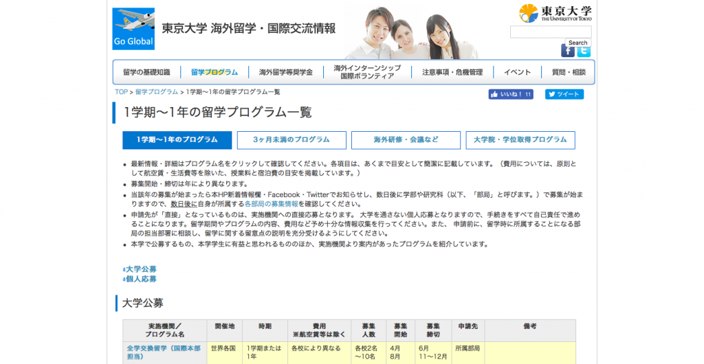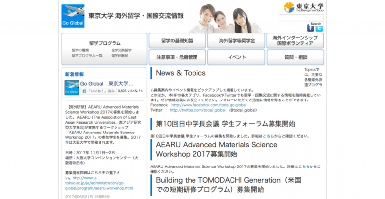東大には留学プログラムの紹介や留学体験記から実際に応募する際の募集要項まで、