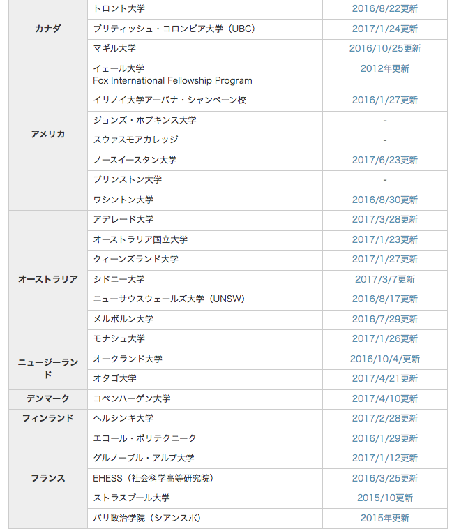 先ほどGo Globalは見づらいと言いましたが、それでもGo Globalには留学に関するすべての情報がまとまっています。