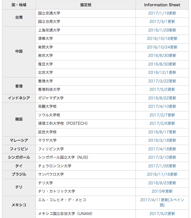 突然ちえみが憑依してしまいましたが、これ結構すごいと思います。募集時期によって誤差はありますが、25カ国2地域73校の大学と提携してるって、one of th most 東大のすごいところだと思いますまじで!
