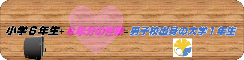 共学出身者は自身が小学6年生だった頃のことを思いだし、そこに6年分の性欲を付け加えていただければ、それが大学1年生の男子校出身者です。