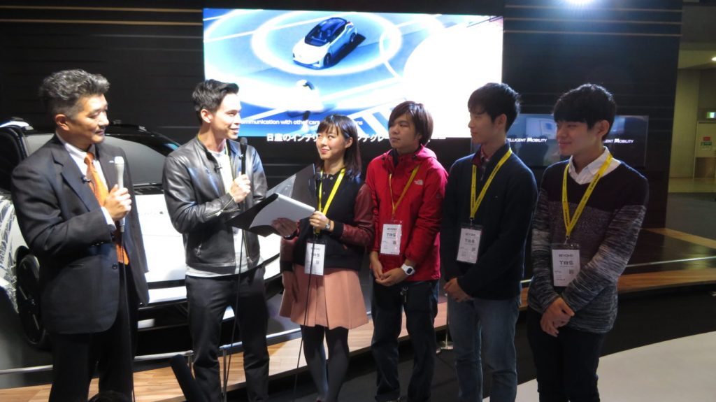 学生委員に番組パーソナリティのケリー隆介さんを加えた5人が、日産グローバルブランドエクスペリエンス部の石原達也さんにインタビューをしています。