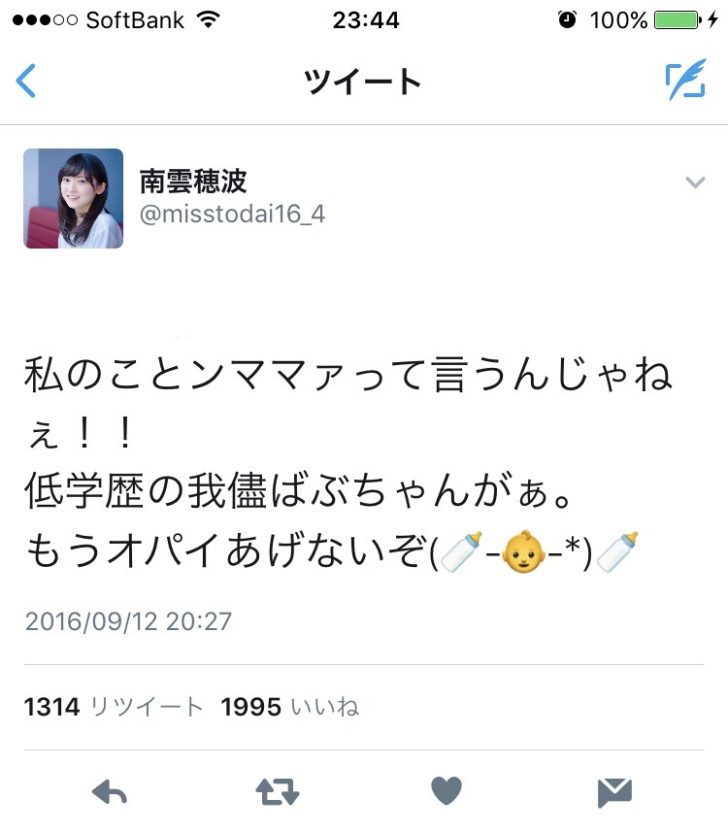 ミス東大コンテスト2016準グランプリであり、現在は様々なメディアで活躍中。Twitter上で未だに多くの人々がママと慕い続けている「穂波ママ」こと