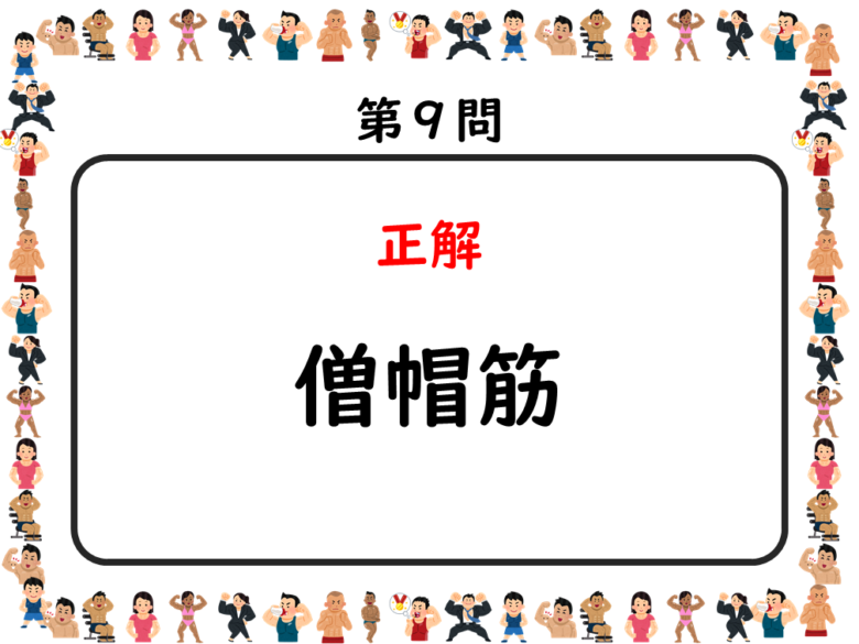 僧帽筋(そうぼうきん)!!ということで、助川さんと石川さんは漢字が書けていませんがおまけで正解にしましょう!!