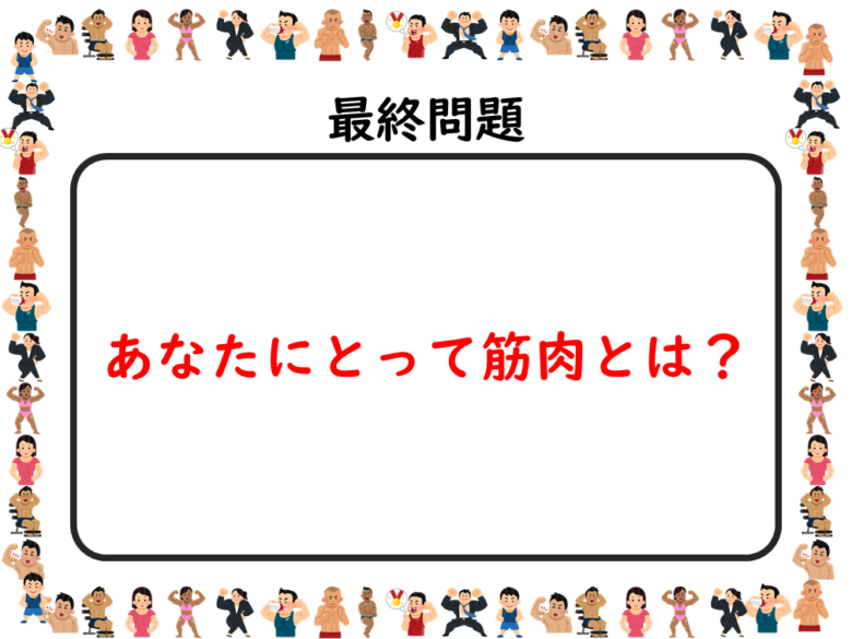 残りは3問。さあマッチョ達よ、上腕二頭筋を引き締めて残りの問題に挑めッ…!!!!