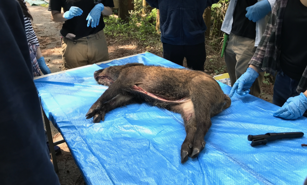 その日はなんと、イノシシの解体をするという。