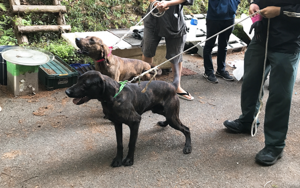 猟犬を連れて実際に、山でアニマルトラッキングをしたり、