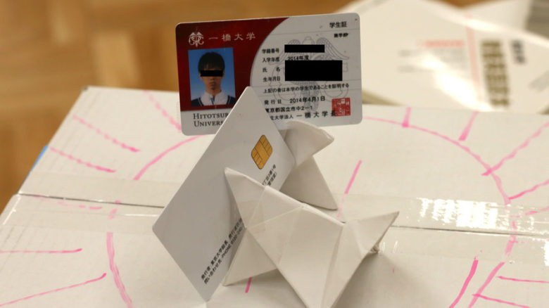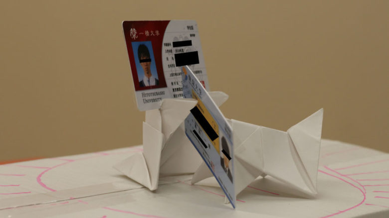 こちらが対する一橋代表。「おすもうさん」の腕に切り込みを入れ、僕の学生証を上手くはめ込みました。改めて思ったんですけど、一橋って学生証が無駄に洒落てて高クオリティなんですよね。
