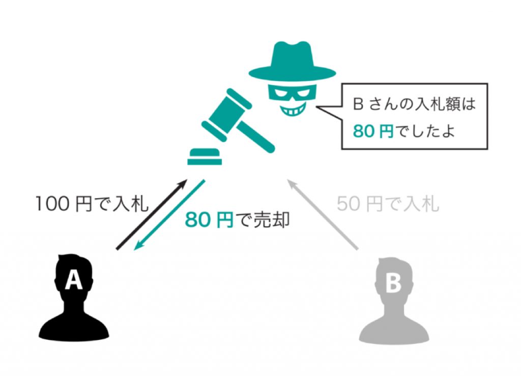 このとき、Aさんは見栄を張って「110円で欲しい!」というと、Bさんが105円と入札していた場合にも落札してしまい、100円より高い額を払うことになります。
