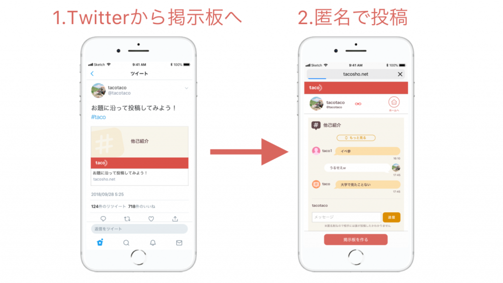 そこで考えたのが、「お題を自分で設定して、知り合いと匿名で語り合う掲示板アプリ」。