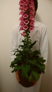 ジゴキシンという薬の原料となるジギタリスという花です。全草に猛毒があるので、観賞用に栽培するには注意が必要となります。ジゴキシンは心臓の働きを強くする薬として用いられますが、治療に適切な量を厳守する必要があり、使用には注意が必要です。