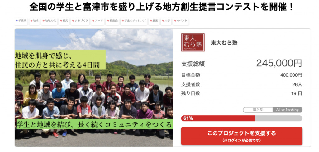 3000円からでもクラウドファンディングに参加することができるので、この記事を読んで、東大むら塾の活動に興味を持っていただいた方、どうかご支援のほどよろしくお願いいたします!!