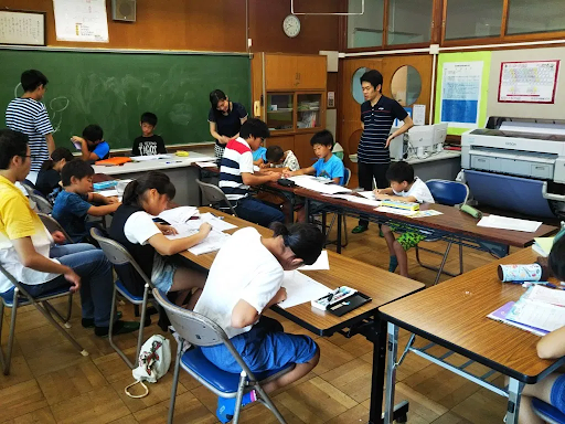 東大むら塾は、夏休みに富津市役所や近くの小学校で、「寺子屋活動」というものを行っています。