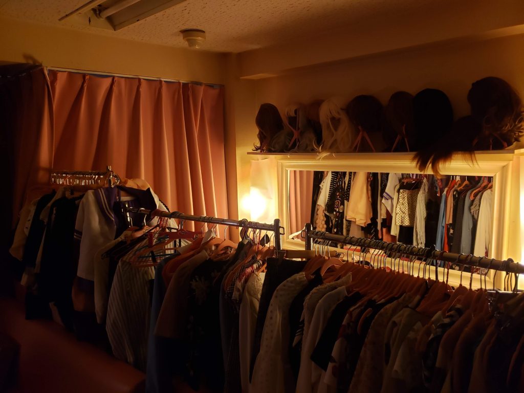 店内でメイクなんかができるのは、他ではあまりないと思う。手ぶらで気軽に来て女装が楽しめるよ。