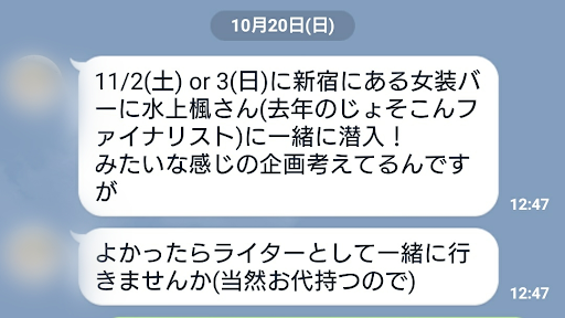 女装バー?じょそこんファイナリストの水上楓??
