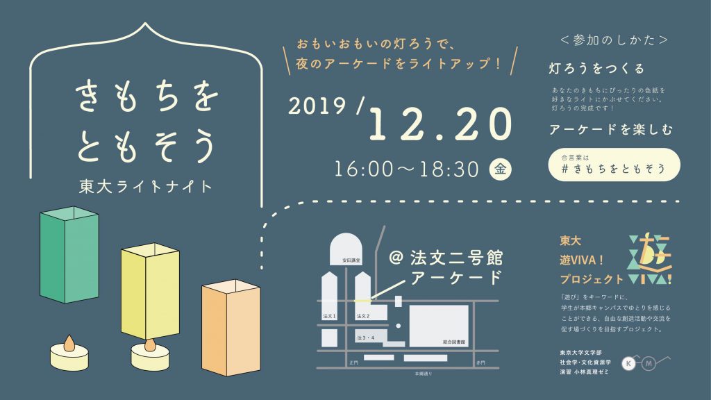 こうして生まれたのが、企画「きもちをともそう 東大ライトナイト」です。舞台は法文二号館のアーケードに移りました。実施日は12月20日。
