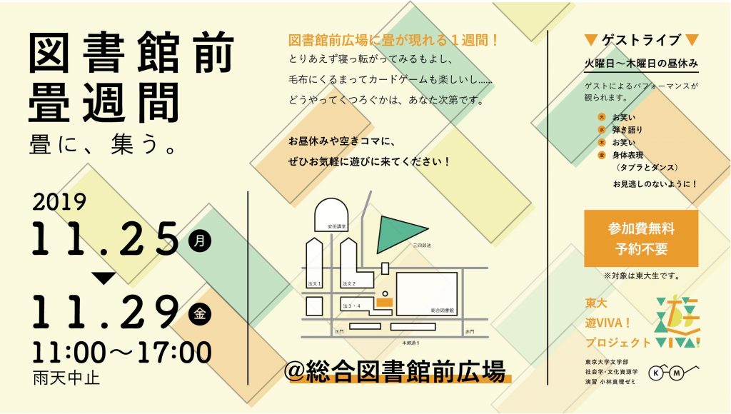 残りの企画は、名付けて「図書館前畳週間」と「三四郎池ライトナイト」。