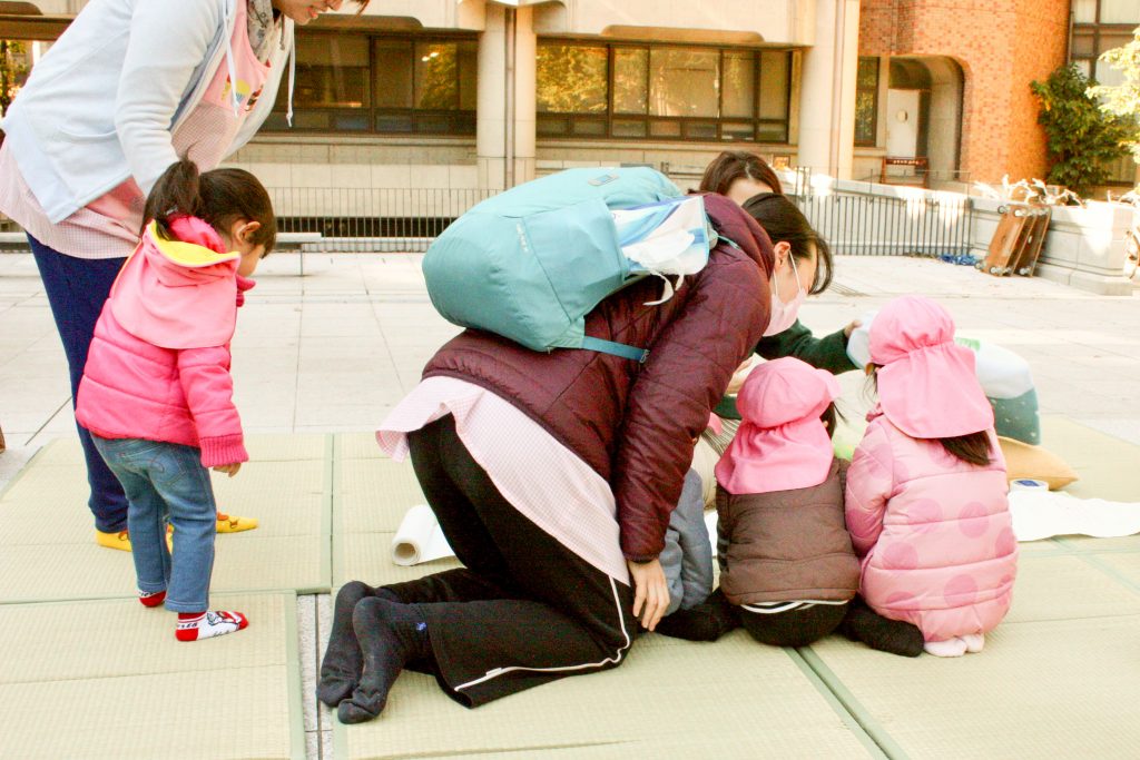 畳って、みんなが靴を脱いで過ごすからか、ベンチに比べてどこか親密ですよね。そこにカードゲームやおやつを用意して、遊びに来てくれる方を待ちました。