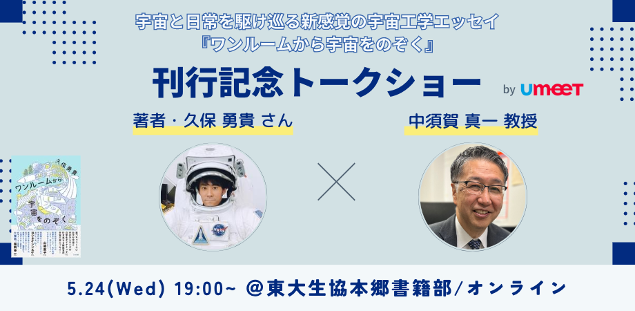 本連載『宇宙を泳ぐひと』掲載内容を含む久保さんのエッセイが『ワンルームから宇宙をのぞく』として書籍化されたことを記念し、東大工学部・中須賀真一教授とのトークショーを開催します!