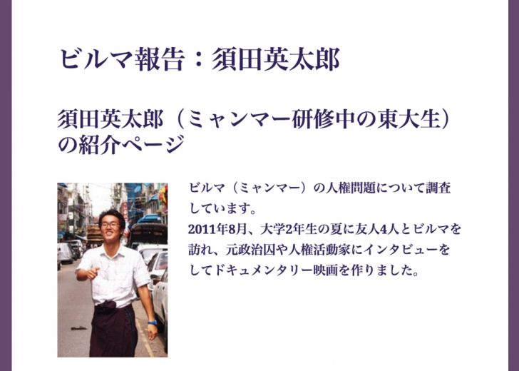 前半は、須田英太郎さんとミャンマーとの出会いから、彼の素顔に迫ります。