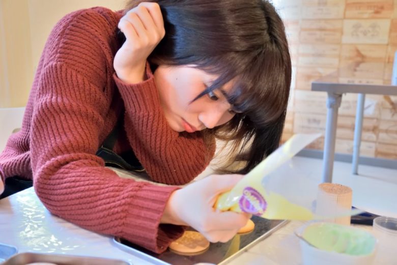 文学部・2年(右)「アイシングの装飾は個性が前面に出るので、作る方も貰う方も楽しめると思います」