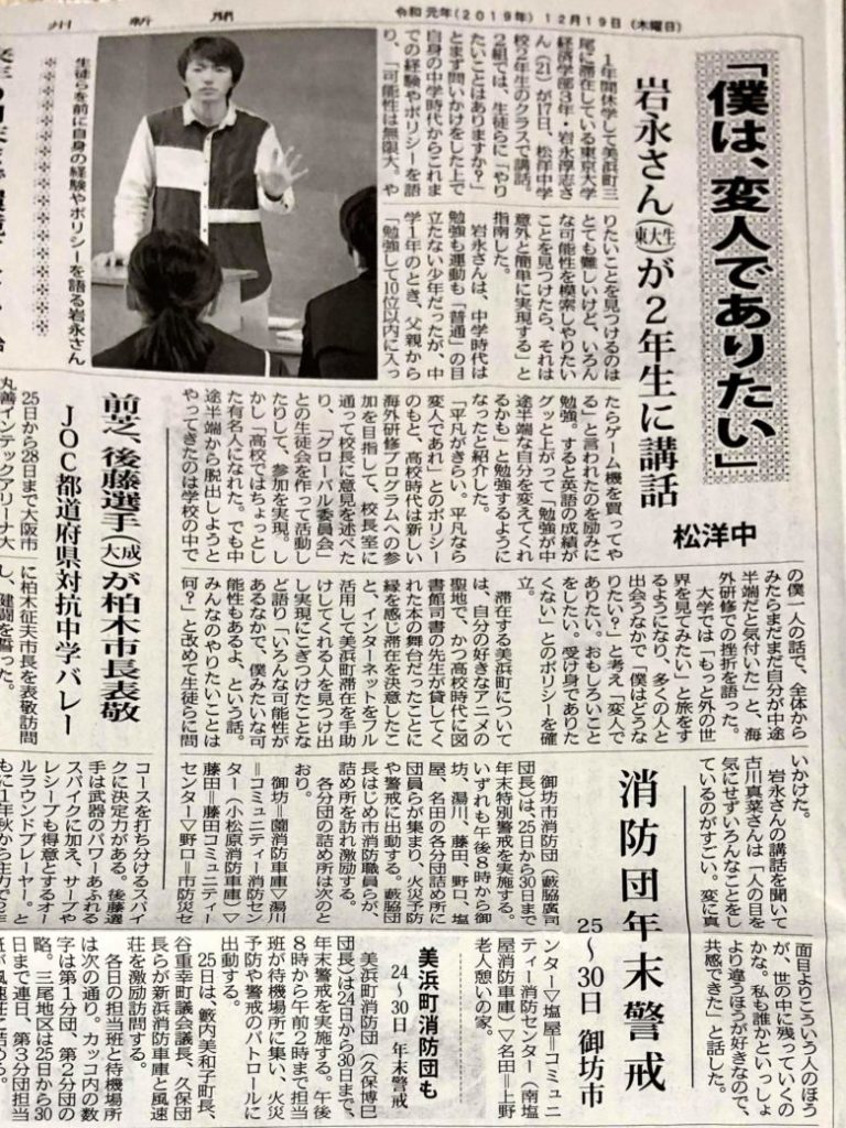 中学1・2年生に授業をする恐れ多い経験をさせていただきました。