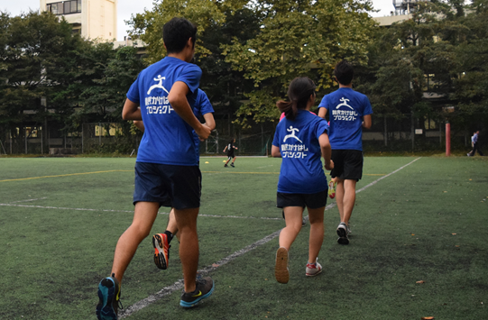 金井:週に1回ミーティングをして、今後の広報などについての話し合いや難民問題についての勉強会をやっています。マラソンに向けてのトレーニングももちろんやっています。あとは、国際協力系のイベントに出たり、自分たちでもランイベントや有志での食事会などを企画したりしました。メンバーは、色んな大学の人が集まっています。美大生がデザインを担当してくれたり、専門的なトレーニングの計画を立てる人がいたり、それぞれ長所を生かして活動しています。
