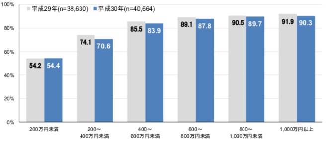 実際、以下の図からわかるように、日本全体では低所得世帯のインターネット利用率が大幅に低くなっています。