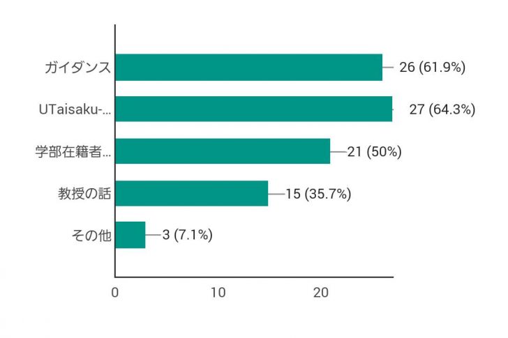 意外にも票を集めたのはキャンパスの立地。この回答をした3.4年生は全員本郷キャンパスの学部に進学された方でした。交通の便が良く、東大のシンボルである赤門がある本郷キャンパスはそれだけ魅力的なのでしょう。