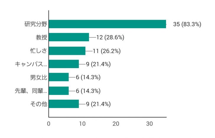 最も票が多かったのは研究分野。学科生活の中心となる学業に興味が持てるかどうかはやはり重要でしょう。