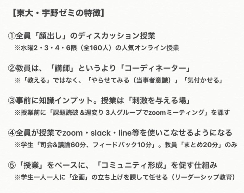 自分の考え方が変わったのは授業によってじゃないんだよ。極論を言うと、本質的に授業は東大と変わらない。