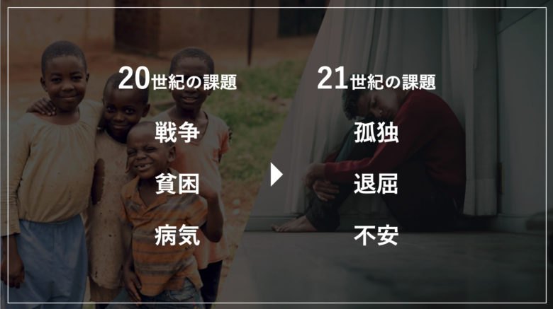 20世紀には、日本は戦争・飢餓・病気という課題を克服してきました。しかし今の日本には貧困は少なく、戦争はなく、国民の寿命も長くなりました。